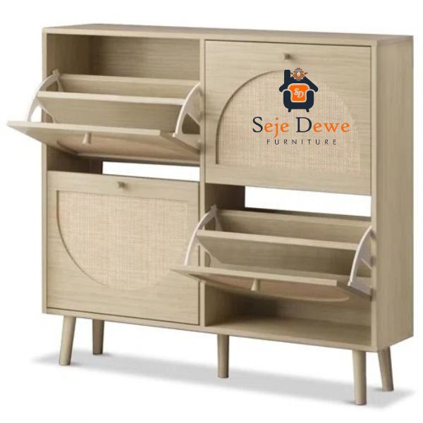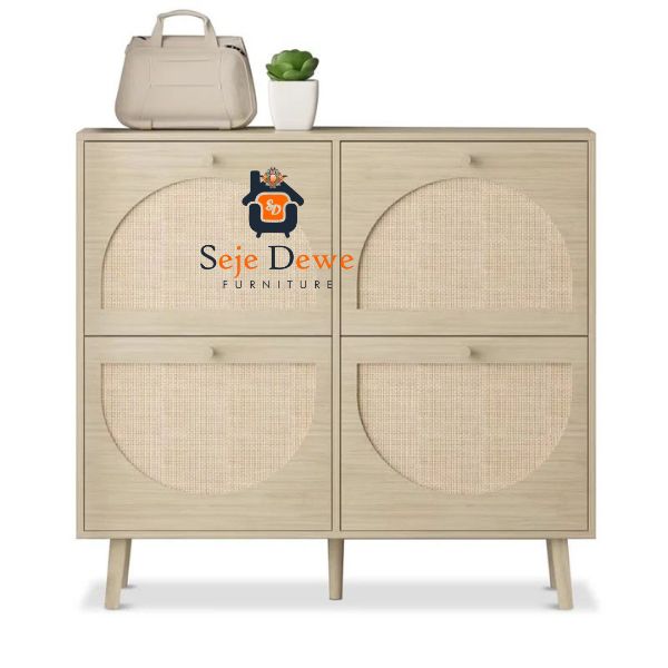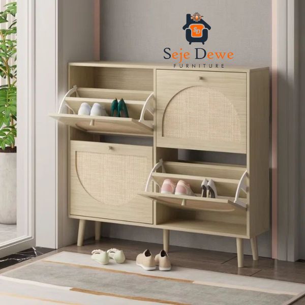 Home Custom Furniture Rak Sepatu Modern Kombinasi Rattan