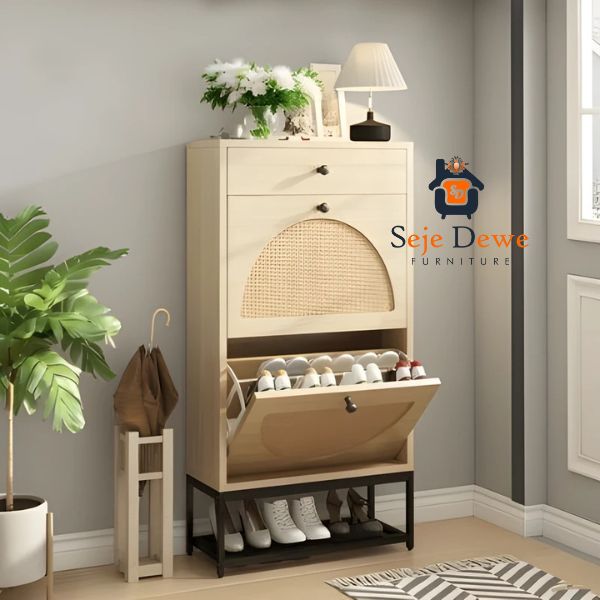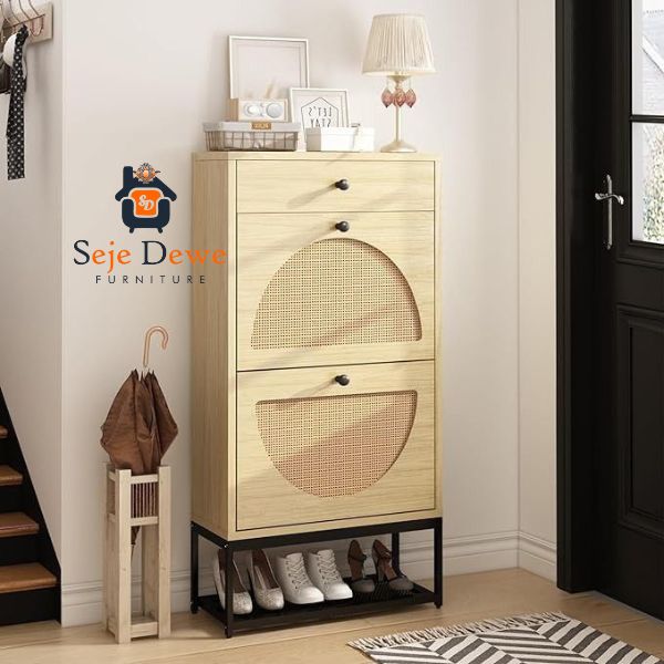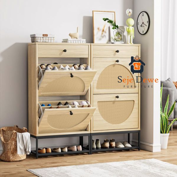 Home Custom Furniture Rak Sepatu Modern Kombinasi Rattan